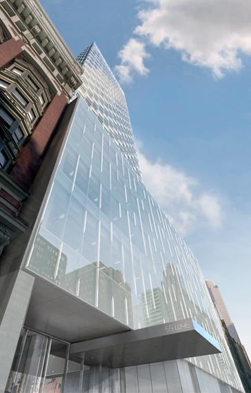 Significant Extell commercial projects include the W Times Square hotel in New York City, Boston’s InterContinental Hotel and Residences and the $200 million redevelopment of Chicago’s Insurance Exchange, for which Extell earned the 2002 Chicago Development of the Year award. In addition to 55 West 46th Street, Extell is currently developing a 60-‐story, 1.8 M square foot tower in Manhattan1s Hudson Yards district designed by Kohn, Pederson, Fox and the renowned One57, a 90 story residential tower overlooking Central Park, designed by Christian de Portzamparc. (IMAGE 2)